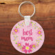 A melhor mãe chaveiro cor-de-rosa com flores. Obrigados para a Creative Fabrica para alguns dos elementos na design.