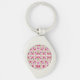 Chaveiro A silver teardrop keychain with a round pink