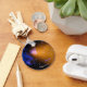 Essa imagem composta do aglomerado de galáxias Abell 3376 mostra dados de raios X do Observatório de Raio-X de Chandra e do telescópio ROSAT em ouro, uma imagem ótica da Pesquisa Digitalizada do Céu em vermelho, verde e azul, e uma imagem de rádio do VLA em azul. A aparência "bala" dos dados de raios X é causada por uma fusão, à medida que o material flui para o aglomerado de galáxias do lado direito. | Smithsonian e Smithsonian são marcas registradas detidas pela Smithsonian Institution.