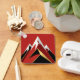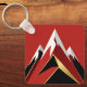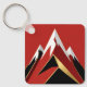 Modern Abstract Mountain Range Design key ring featuring, a Red mountain range with black, gold and white accented peaks on a red background.