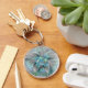 Uma borboleta de fantasia colorida e muito decorativa com cores pastel azuis-esverdeadas harmoniosas. Design para seu chaveiro redondo e muito mais.