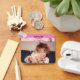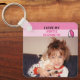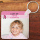 Corrente de dois lados, ideia do anel-chave para sua tia ou para qualquer outra pessoa. Substitua as fotos por suas próprias, frontais e traseiras e adicione um nome. Eu amo minha tia. Esquema de cor rosa com formas de folha.