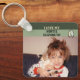 Corrente de dois lados, ideia do anel-chave para sua tia ou para qualquer outra pessoa. Substitua as fotos por suas próprias, frontais e traseiras e adicione um nome. Eu amo minha tia. Esquema de cor verde com formas de folha.