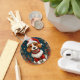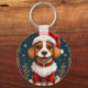 Um cão feliz vestindo uma roupa de Papai Noel, sentado cercado por decorações de temas de férias. A imagem irradia alegria e festividade, perfeita para representar o espírito do Natal e das comemorações de Natal.