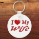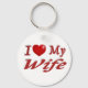 Corta-chave com o coração da minha esposa em texto vermelho 3D. Correntes de chave redondas e quadradas disponíveis em vários estilos.