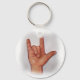 Desenho pastel de uma mão assinando "Eu te amo" na linguagem de sinais americana.