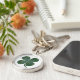Excelente que olha a corrente chave afortunada, com um trevo da xadrez da folha do verde 4 do divertimento, contra um fundo branco. Grande encanto afortunado que faz um presente pequeno bonito demasiado.