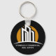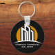 Este chaveiro comercial é chic e moderno. Personalize com seu nome e informações da empresa. Ele apresenta um desenho de linha branca e preto minimalista em forma de chic de uma linha do horizonte de um edifício e um simples nascer de laranja para um agente de realeza que trabalha com propriedades de investimento nos negócios. Use esta design contemporânea para uma grande abertura de um grupo profissional de gestão imobiliária ou imobiliária.