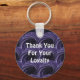 Expresse a sua gratidão aos seus clientes leais com um chaveiro com um padrão moderno de abstrato. Esta obrigado que você cola é adornada com camadas de círculos sobrepostos com um padrão roxo e preto girado. "Obrigado por sua lealdade" aparece no centro em letra branca e pode ser facilmente personalizado se desejar.