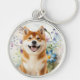 Chaveiro Akita Shiba Inu Dog with Blue Watercolor Flowers