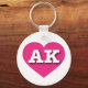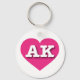 Este chaveiro apresenta um coração rosa-quente vibrante contendo as letras maiúsculas, brancas e em negrito AK, a abreviação oficial do Alasca, a última fronteira.
