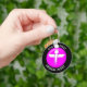 Chaveiro cor-de-rosa alerta médico de alergia aos ovos