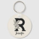 Chaveiro Alfabeto Floral R Preto e Branco