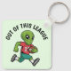 Este chaveiro apresenta um design lúdico de uma alienígena com uma bola de ferro amarrada em seu braço, pronta para ação. Ao lado da frase "Fora desta Liga", este acessório é perfeito para fãs desportivos, especialmente amantes de futebol com uma torção divertida e intergaláctica.