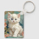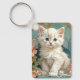 Chaveiro com um gato branco no estilo de Alphonse Mucha! Este gatinho liso e de olhos azuis posou com flores cor-de-rosa e cobertores azuis. Um presente fabuloso para amantes de gatos e colecionadores de Art Nouveau!