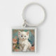 Chaveiro com um gato branco no estilo de Alphonse Mucha! Este gatinho liso e de olhos azuis posou com flores cor-de-rosa e cobertores azuis. Um presente fabuloso para amantes de gatos e colecionadores de Art Nouveau!