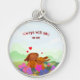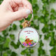 A heartwarming and adorable round keychain featuring two lovely bunnies cuddling together in a colorful flower field, with floating red hearts above them.