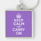 Versão moderna "Manter calma e continuar" roxa e branca do poster clássico.