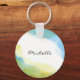 Chaveiro personalizado retrata um fundo de abstrato com aquarela moderna com tons de azul e verde. Apresenta uma poderosa citação cristã inspiradora, "Amor Como Jesus." Personalize o verso com um nome ou detalhes da sua escolha.