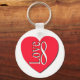Este chaveiro tem "Love 8" ou preferencialmente "Love Infinity" em um coração. Fundo branco.