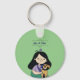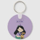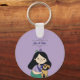 Esta chaveiro apresenta uma ilustração de uma jovem que abraça um cachorro marrom giro e bonito. Este é um presente excelente para uma jovem que é dona de um cão ou que ama cães em geral.