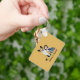 Esta chaveiro amarela-dominante mostra uma ilustração de uma jovem e um feliz cão de raça grande se inclinando um contra o outro. Este é um presente de excelente para uma jovem mulher que é dona de um cão ou que ama cães em geral.
