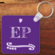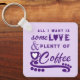 Corrente de dois lados, ideia de presente de anel para um amante de café. Adicione as iniciais no verso. Amor e muito café. Púrpura escura e pálida com corações amorosos.
