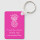 Este chaveiro personalizado fofo apresenta um abacaxi rosa brilhante em branco na frente e um abacaxi branco em rosa no verso. Personalize cada lado com sua escolha de nome e texto especial.