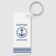 Capitão de Âncora do Mar Náutico Adicionar Nome ou Nome do Barco Marinho Azul no Chaveiro Branco.