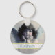 Um chaveiro personalizado com um querube doce. Bonita design de vintage de um anjo clássico com cabelo encaracolado, asas brancas e bochechas rosadas, segurando seu rosto em suas mãos. Parecendo tranquilo e gentil. Personalize com um nome.