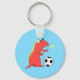 Chaveiro de futebol engraçado personalizável com uma ilustração colorida de um dinossauro engraçado com um hálito a fogo jogando futebol. Esta chaveiro engraçada faria um presente de excelente para rapazes e homens que amam futebol. Também com este dinossauro de futebol: com.