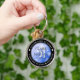 Celebrar o aniversário de casamento de 51 rua com esta chaveiro comemorativa de na moda! A inscrição elegante com um confete hexagonal num fundo azul-safira acrescenta um toque memorável para esta ocasião especial e um marco extraordinário. Personalize com nomes de casais, data de aniversário e até 2 linhas de mensagens. Design © W.H. Sim. Mais informações em zazzle.com/expressionsoccasions