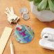 Anjos de Natal explodem suas trompetes para anunciar o início da temporada de férias. Uma aquarela original pintada em tons vibrantes de vermelho, roxo, verde e azul, este é um anjo de Natal atraente com design de trompetes para trazer a música do Natal para dentro de sua casa.