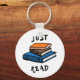 Ilustração de uma pilha de livros com texto que diz: "Apenas Leia".