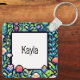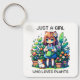 Corda-chave bonita e personalizada para qualquer garota que ama plantas. Gráfico ai em um estilo de jogo de pixel. Garota segurando água rodeada de muitas plantas.