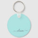 Chaveiro Aqua Blue Teal Modern Script Girly Monographic Nam