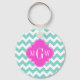 Chaveiro Aqua White Chevron Quatrefoil Rosa Quente 3 Monogr