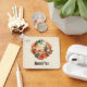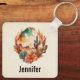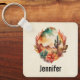 Chaveiro personalizado com uma bela ilustração pintada. Cactos verdes e montanhas marrons com flores laranja do deserto. Cênico bonito design a sudoeste.