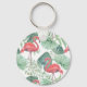 Chaveiro Aquarela Inflamingos e folhas cor-de-rosa.