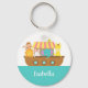 Coloque a vela no mar com esta design de Arca de Noé colorida e fofa. Ele apresenta uma nave cheia de bebês bonitos como macaco, leão laranja, coelho branco, elefante azul, girafa e pássaro. Design de cadeia de chaves adorável para crianças com personalização de nomes.