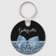 Chaveiro jaguar azul e na moda empoeirado e impressão preto com fita azul-clara atada a um arco bonito. Personalize esta moda design de impressão animal estilo leopardo acrescentando o nome da sua adolescente. Imagem impressa plana, não arco real.
