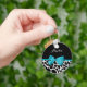 Um chaveiro de impressão de girafa branca e preta com uma fita azul aqua de tendência amarrada em um arco feminino. Personalize este design de impressão animal fofo, adicionando seu nome. Imagem impressa plana, não arco real.