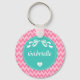 Personalize adicionando seu nome a este chaveiro de padrão-padrão-padrão-padrão-padrão-padrão-padrão-zigzag, cor-de-rosa, de duas tonalidades, com uma faixa verde-estilizada de menta, decorada com um arco branco-na moda e um coração com um dentro-âncora-chic. Design perfeito para a adolescente.