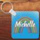 Cadeias de chave personalizadas. Edite o modo de o personalizar. Arco-íris com estilo cartoon bonito com textura de papel e efeito biselado. Tudo o que se vê é impresso, não será usado nenhum relevo real no fazer desses produtos. Ideia para adultos e crianças.