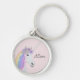 O Chaveiro de Arco-Íris Personalizado Unicórnio, Rosa, faz uma ideia de presente de excelente! O plano de fundo mostrado é rosa-claro e está disponível em várias cores! O bonito unicórnio branco adicionou cabelo pastel arco-íris e flores.