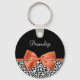 Personalize acrescentando o nome de qualquer menina feminina a esta chaveiro de impressão branca e negra chica com uma fita laranja queimada elegante amarrada num arco sofisticado. Este design de impressão na moda é uma imagem impressa plana e não contém fita real.