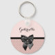 Uma chaveiro pálida parisiense pálida e bolinhas preta com uma fita escura entre elas presa a um arco bonito. Personalize esta rosa claro feminina que o francês inspirou ao adicionar seu nome. Imagem impressa plana, não arco real.