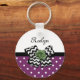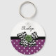 Mostre seu estilo pessoal com este chaveiro de padrão de bolinhas roxo e branco giro com um arco chevron preto e branco de tendência e um rosa verde-chic. Dê a este retrato roxo e verde um toque personalizado da design moderna, adicionando o nome da sua adolescente. Imagem impressa plana, NÃO fita e arco de rosetas reais.