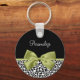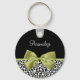Personalize acrescentando o nome de qualquer garota feminina a este bonito chaveiro preto e branco de impressão leopardo com uma bonita fita verde primavera amarrada em um arco elegante. Este design de impressão chic e na moda é uma imagem impressa plana e não contém fita real.