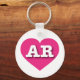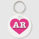 Este chaveiro apresenta um coração rosa-quente vibrante contendo as letras maiúsculas, brancas e em negrito AR, a abreviação oficial para Arkansas, o estado natural.